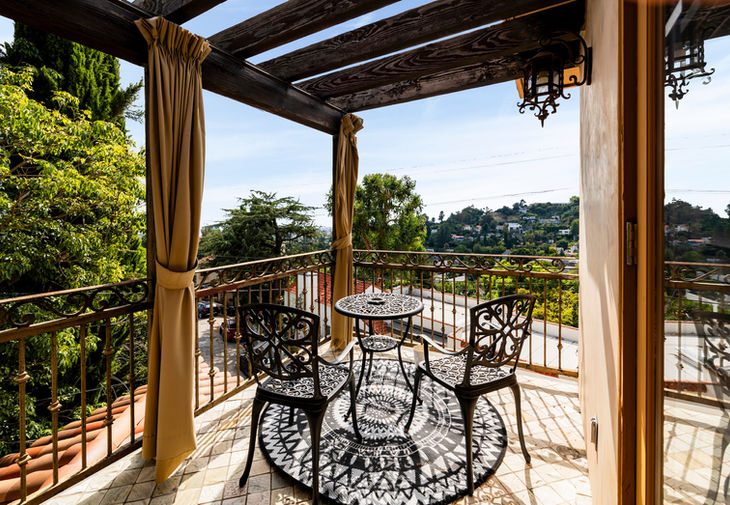 Isn’t it time you live in your castle? Welcome to over 3000 sq ft of grand scale luxury resort-style living built circa 1925 by Robert R. Miles and redesigned in 2004. This exquisite 5 bedroom, 4 bathSpanish villa is located in prime Beachwood canyon with city and canyon views from almost every room. A sumptuous, graceful Living Room features high coved ceilings, fireplace, gleaming wood floors and arched French doors that lead out to a private lanai overlooking verdant canyon and city views, ideal for AlFresco dining. Spacious Formal dining room has Venetian plaster walls and will accommodate large gatherings. Chef’s kitchen boasts top of the line SS appliances with cozy turret breakfast nook banquette and wood cabinetry. Upper split level offers two generous bedrooms one with garden balcony and access to a private spa tub. Top level features a versatile third bedroom currently used as a family den/game or screening room that could be second primary bedroom with travertine stone bathroom. Also, a fourth bedroom being used as a gym and a luxurious primary fifth bedroom with high coved ceilings walk-in closet and a private balcony with views.Primary bath has separate spa tub and travertine enclosed glass walk-in dual shower, Toto toilet and separate bidet.Relax in the Intimate outdoor spa tub among mature flowering trees. Plus, dual heating and air conditioning system, security system, indoor laundry room, sound system, refrigerated wine cellar and two-car garage with direct entry. A Superb hillside location centrally located close to shopping, theaters and trendy Hollywood restaurants, but a world away from the crowd. Be the queen or king in this gorgeous castle. A stunning serene entertainer’s hideaway