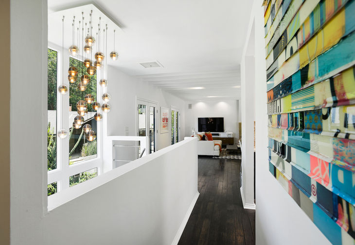 Upper Beachwood Canyon sleek and sophisticated Architectural 2+2 with office/Media room and sparkling pool. Dramatic 2-story window entry showcases a Floating staircase, Bocci Chandelier and Terrazzo floor. Main level Design elements include a Post and Beam style ceiling, wide plank wood floors, recessed lighting, raised hearth stone fireplace and single light French doors that frame the Treetop vistas. A Streamlined skylit kitchen features Quartz counters, Travertine backsplash, Wood cabinetry and Chef Ready stainless steel appliances. The private En Suite Master has double closets, custom shades and direct access to pool. Relax in the Luxe Master sunken tub/glass tile shower and savor the views of a private Zen garden framed by the curved picture window. Heated pool and lounge patio. HVAC, Security, laundry and Direct access from two car garage. Close to Village, Cafe and Market.