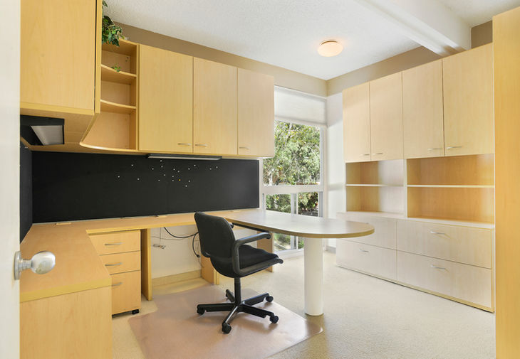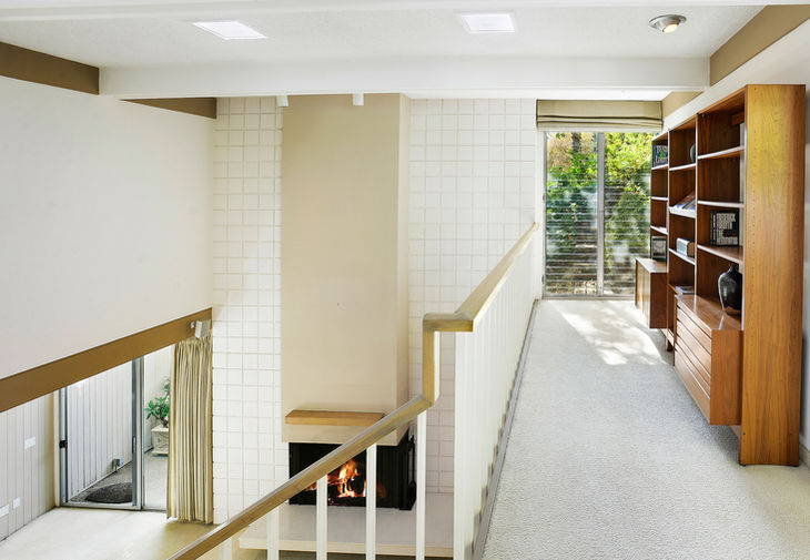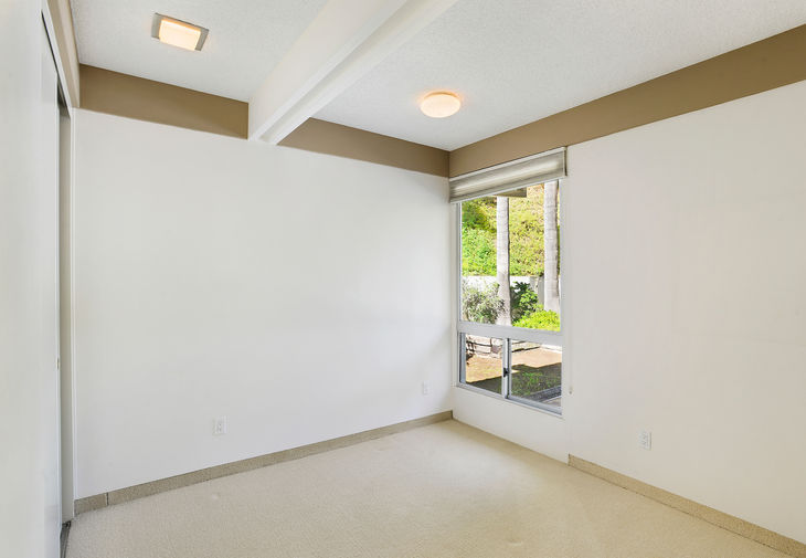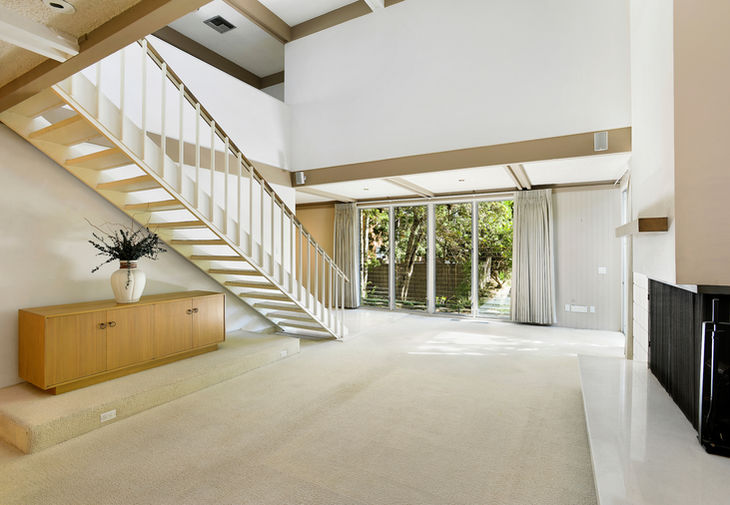 Secluded two-story 3 bedroom, 2.5 bath Mid-Century home in the Los Feliz Oaks. Sited on a serene tree-lined cul-de-sac, this very original home features dramatic high beam ceilings with floor to ceiling windows, two-story fireplace and loft landing. Adjacent formal dining room leads to the large chef’s kitchen complete with granite counters, wood cabinetry, and dining bar peninsula, plus dry bar with wine fridge, warming oven, and breakfast area, all enhanced with sky lights and recessed lighting. Streamlined open riser staircase leads to the loft-like hallway and light filled bedrooms with treetop views. Spacious master features a wall of closets and sleek en suite bath. The third bedroom is outfitted as an office with built-in desk and storage. Outdoor private dining patio and garden space nestled amongst the greenery of the hills. Two-car direct access garage. Close to Griffith Park, the Greek Theater, and studios.