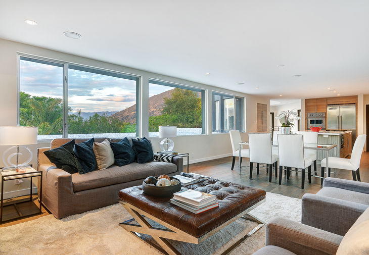 Hollywood Knolls gated 3 bedroom, 4 bath Sophisticated Architectural with scenic vistas from every room and private pool framed by lush landscaping. Redefined interior spaces showcase a Custom circular steel staircase with glass treads, wall-to-wall Fleetwood doors and Tall ceilings. Exquisite finishes include Italian cabinetry and fixtures, Silestone quartz counters, Ann Sacks tile and wide plank Oak floors. Second floor sitting area overlooks the Dramatic step-down Living & Diningrooms that open to a large entertainer’s patio deck with gas fire pit. The light-filled top floor Great Room showcases a spacious family room with fireplace, dining area and a Modern European-style kitchen featuring a sleek center island with seating for eight, Viking Professional Series appliances and wine closet. Sumptuous master suite has a fireplace, enormous walk-in
